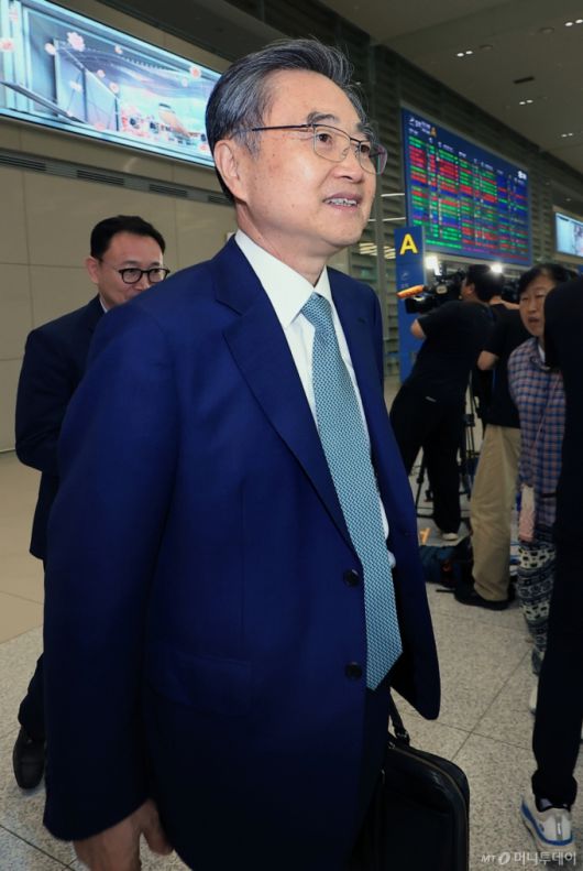 미국 방문을 마친 조현 외교부 장관이 지난달 3일 오후 인천국제공항 2터미널을 통해 귀국하고 있다. / 사진=뉴스1 |