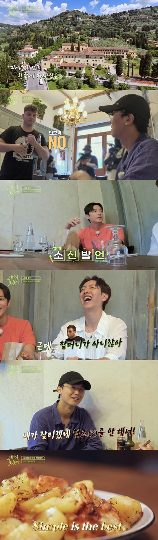 오늘(21일) 오후 9시 20분에 방송되는 채널S와 SK브로드밴드 공동 제작 '뚜벅이 맛총사'에서는 천혜의 자연 경관을 자랑하는 사투르니아에서의 힐링 여행, 그리고 피렌체 대표 부촌 마을 피에솔레에서 펼쳐지는 좌충우돌 저녁 만찬기가 공개된다. 권율, 연우진, 이정신은 현지인의 추천을 받아 피에솔레 언덕에 자리한 고즈넉한 분위기의 로컬 식당으로 향한다. 그러나 정통 이탈리아 요리에 대한 기대감은 잠시, 직원과의 소통 불가로 주문 단계부터 폭풍 난관에 휩싸인다. 연우진이 "영어 메뉴판이 있냐"라고 묻자, 직원은 단호하게 "NO"라고 잘라 말해 세 사람을 당황하게 만든다. 해당 식당은 관광객이 없는 현지인 전용 맛집이었던 탓에 오로지 이탈리아어로만 소통이 가능했다.