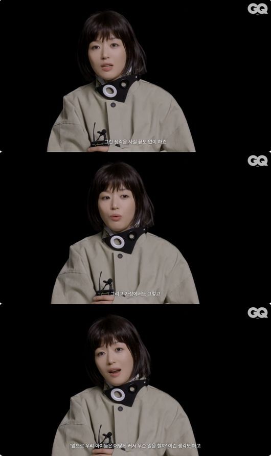 또 전지현은 “‘나이가 들었을 때 여배우, 전지현은 어떤 모습일까?’ 그런 생각을 사실 끝도 없이 한다”라며, “그리고 가정에서도 그렇고, ‘앞으로 우리 아이들은 어떻게 커서 무슨 일을 할까’ 이런 생각도 하고, 그런 생각들은 끝없이 하는데 결과적으로는 ‘오늘 할 수 있는 거를 잘 하자’ 이런 생각을 사실 더 많이 하는 것 같다”라고 밝혀 눈길을 끌었다.