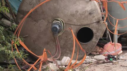 사고가 난 탱크는 구조 과정에서 이렇게 눕혀졌는데 입구가 매우 좁습니다.