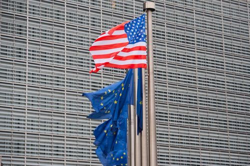 EU 깃발과 미국 성조기 |