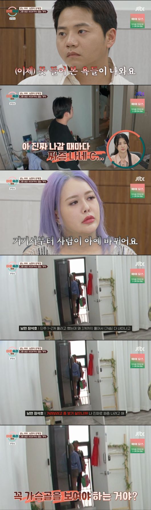 하지만 남편의 충격적인 언행 또한 문제가 됐다. 아내 측이 공개한 영상에는 남편이 화가 나면 누구에게든 폭언을 한다는 사실이 담겨 있었다. 박하선은 "(이제) 못 들어 본 욕들이 나온다"라고 말하기도. 아내가 외출 준비 중 민소매를 입거나 셔츠 단추를 푼 것을 보고 "꼭 가슴골을 보여야 하냐"며 충격적인 욕설을 퍼붓는 모습에 모두 경악했다.