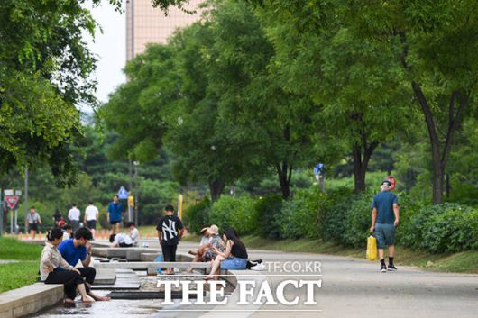 기상청에 따르면 22일 한반도는 일본 남쪽에 위치한 고기압의 가장자리에 들겠다. 고기압의 영향으로 전국 대부분 지역에서 최고 체감온도가 35도 안팎으로 오르는 무더위가 이어지겠다. /장윤석 기자 |
