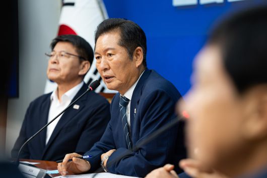 정청래 더불어민주당 대표가 21일 서울 여의도 국회에서 열린 호남발전특별위원회 출범식에서 축사를 하고 있다./뉴스1 |