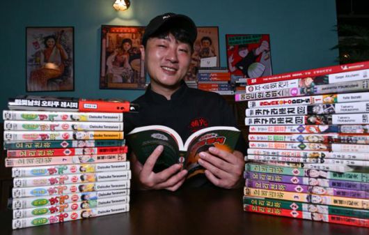 그에게 만화와 요리는 이제 떼려야 뗄 수 없는 관계가 됐다. 식당 곳곳에도 만화책과 요리책이 쌓여 있다. 어릴 적 일본 만화 '미스터 초밥왕'을 보고 달걀말이를 만들던 초심을 잃지 않겠다는 듯. 만화책을 보고 요리를 시작하려는 이들에게 그가 추천하는 만화는 단연 '미스터 시리즈'(미스터 초밥왕·미스터 요리왕·미스터 맛짱)다. 재미있는 요리 만화로는 '철냄비 짱!'과 '중화일미'를 빼놓을 수 없다. '식극의 소마', '식객', '화려한 식탁'은 최근 손이 많이 가는 책들.