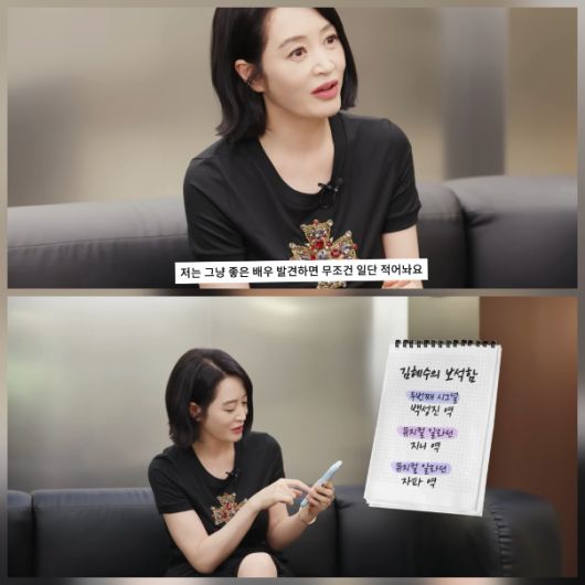 이어 김혜수는 “좋은 배우를 발견하면 바로 휴대폰 메모장에 적는다”며 자신만의 습관도 공개했다. “연기할 때 바로 물어보면 실례가 될 수 있어서, 끝나고 나서 매니저나 연출부를 통해 최소한의 정보를 확인해 메모한다”며 연기에 대한 남다른 열정을 드러냈다.