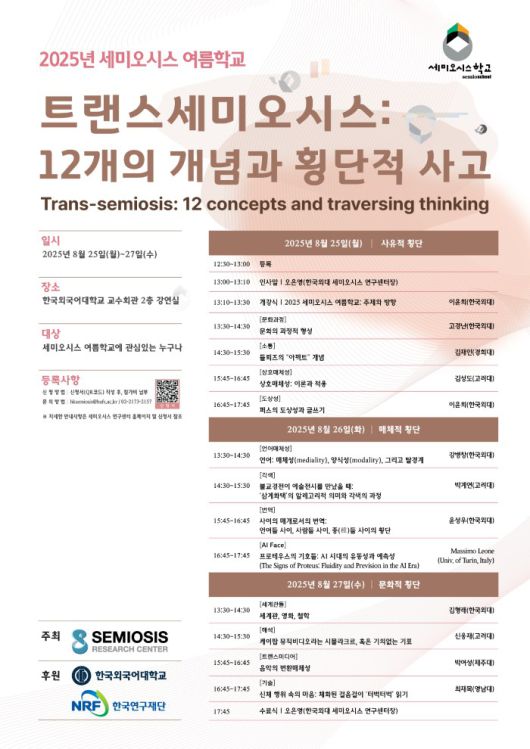 한국외대는 "세미오시스 여름학교는 연구자뿐만 아니라 학생과 일반인 모두에게 열려 있어, 참가자들은 횡단적 사고를 직접 경험하고 다양한 개념의 울림을 통해 새로운 연결과 배움을 발견할 기회를 얻게 될 것으로 기대된다"고 밝혔다.