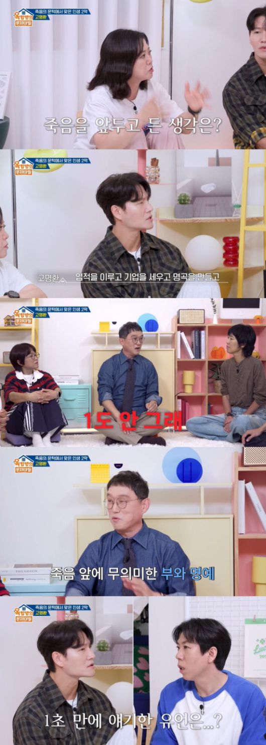 죽음을 앞두고 어떤 생각이 들었냐는 김숙의 말에는 "사람들이 잘못 생각하고 있는 게, 내가 업적을 이루고 기업을 시우고 명곡을 만들고 하는 이런 걸로 위로하면서 죽을 것 같지만 1도 안 그런다"고 답했다.