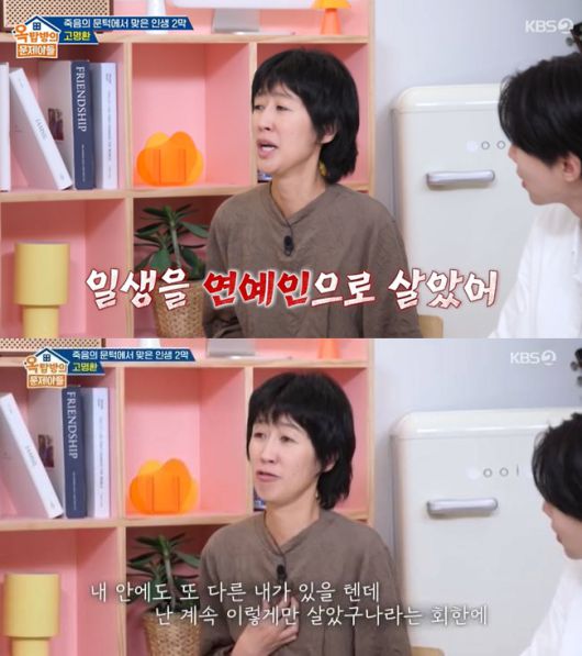 이 말을 들은 홍진경은 "16살에 데뷔해서 일생을 연예인으로만 살았다. 다르게 사는 삶에 대해 상상이 안 된다"며 "내 안에도 또 다른 내가 있을 텐데 계속 이렇게만 살았구나"라며 눈물을 보였다.