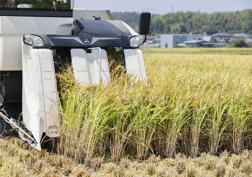 농기계로 햅쌀 수확하는 일본 농가 |