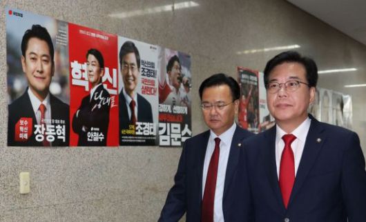국민의힘 송언석 비상대책위원장 겸 원내대표가 22일 국회에서 열린 원내대책회의에 참석하고 있다. 연합뉴스 |