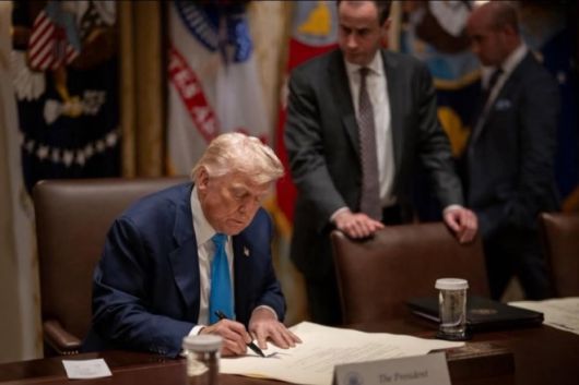 도널드 트럼프 미국 대통령이 지난달 31일 백악관에서 한미 무역협정에 서명하고 있는 모습. 백악관X |