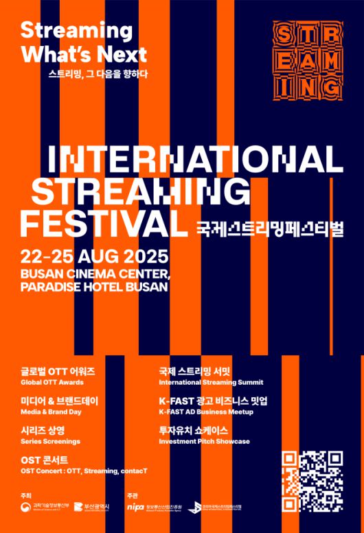 올해 페스티벌은 4일간 진행되며 글로벌 스트리밍 산업 미래를 다루는 ‘국제 스트리밍 서밋’, AI 미디어 기술 및 콘텐츠 투자유치 쇼케이스, 넷플릭스·티빙 등이 참여하는 ‘미디어&브랜드 데이’, 세계 플랫폼·콘텐츠·아티스트·크리에이터를 시상하는 ‘글로벌 OTT 어워즈’ 등이 마련됐다.