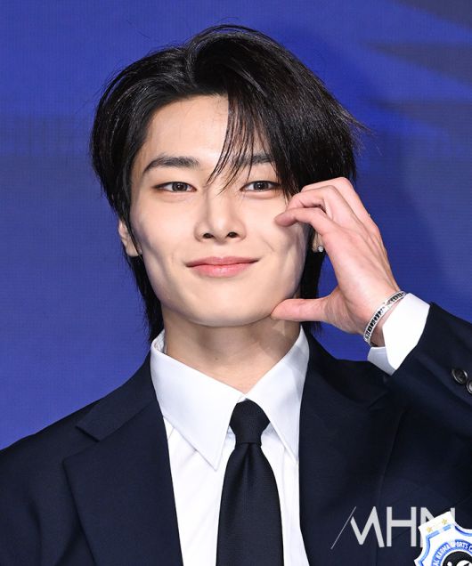 (MHN 이현지 기자) 그룹 스트레이 키즈(Stray Kids) 아이엔이 22일 오전 서울 영등포구 콘래드서울에서 진행된 정규 4집 'KARMA'(카르마) 발매 기념 기자회견에 참석해 포토타임을 갖고 있다.