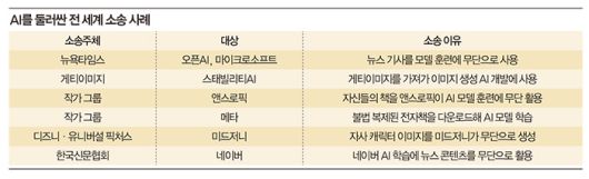 한국도 유사한 상황이다. 지상파 3사가 올 초 네이버가 AI 학습에 뉴스 콘텐츠를 무단 활용했다며 저작권 소송을 제기했고, 한국신문협회도 4월 비슷한 맥락으로 네이버를 공정거래위원회에 제소했다.