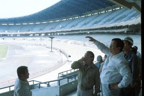 올림픽경기장 건설 현장을 시찰하는 염보현 시장 |
