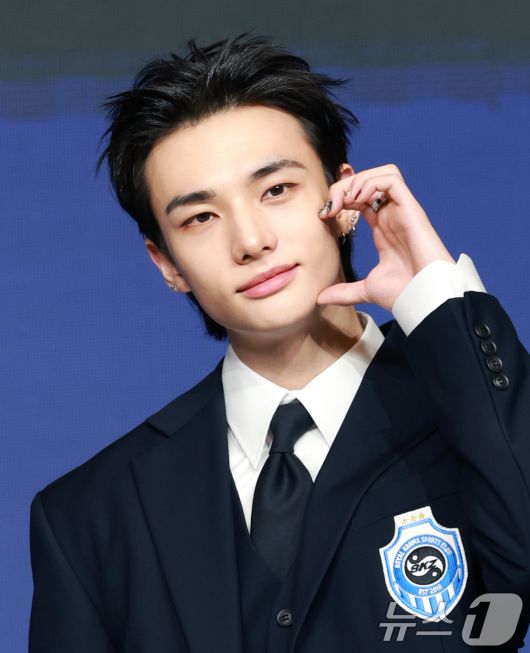 스트레이 키즈(Stray Kids) 현진이 22일 오전 서울 영등포구 콘래드호텔에서 열린 네 번째 정규 앨범 ‘KARMA’ 기자간담회에 참석해 포즈를 취하고 있다. 2025.8.22/뉴스1 ⓒ News1 권현진 기자 |