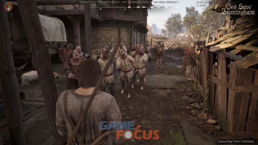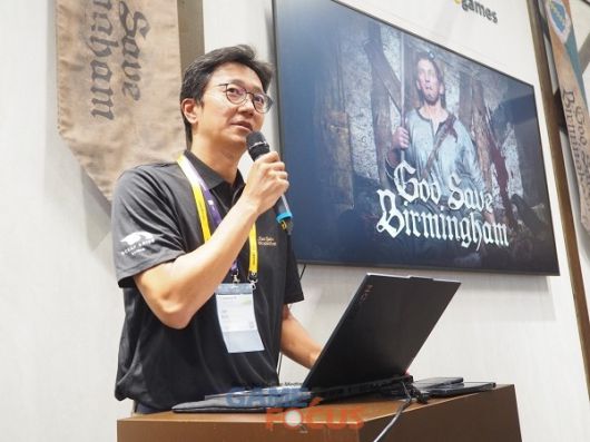 게임의 구체적인 소개는 프로젝트를 맡고 있는 차현성 디렉터가 이어갔다. 갓 세이브 버밍엄은 14세기 영국 버밍엄을 무대로 한 좀비 아포칼립스 서바이벌이다. 개발팀은 역사적 사료 조사를 바탕으로 당시의 마을과 건축 양식을 충실히 복원했다. 대표적인 사례로, 현재 고딕 양식으로 증축된 세인트 마틴 교회를 당시의 중세 양식으로 재현한 것이 있다.
