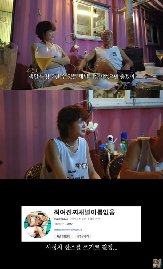 최여진은 "최여진 채널이라고 처음에 지은 이름도 난 이름 자체를 짓는 게 싫었다"며 채널 이름 짓기에 쉽게 후보를 내지 못했다.