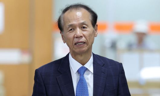 최문순 전 강원도지사가 22일 서울 서초구 서울중앙지방법원에서 열린 알펜시아 리조트 입찰 방해 관련 1심 1회 공판에 출석하고 있다. 공동취재 |