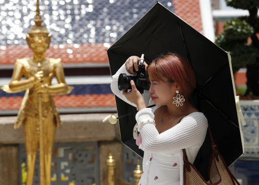 태국 방콕에 있는 한 유명 사원에서 관광객이 사진을 찍고 있다. [EPA] |