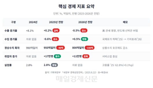 관세협상 타결로 불확실성이 상당히 줄었지만 반도체·의약품 품목관세 등의 위험 요인을 감안해 내년 수출은 0.5% 감소로 전망했다.