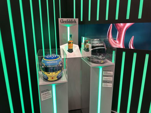 윌리엄그랜트앤선즈(WG&S)가 애스턴 마틴 F1 팀과 손잡고 연 '글렌피딕 16년 한정판' 출시 기념 팝업스토어에서다. 현장은 팀의 시그니처 컬러인 '레이싱 그린'으로 꾸며졌다.