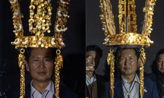 그러나 정 대표가 마치 천마총 금관을 쓰고 있는 듯 착시를 불러일으키는 사진이 논란을 불러왔다. 국보 188호인 천마총 금관은 신라 금관 중 가장 크고 화려한 작품으로 신라 황금 문화를 대표하는 문화재다.