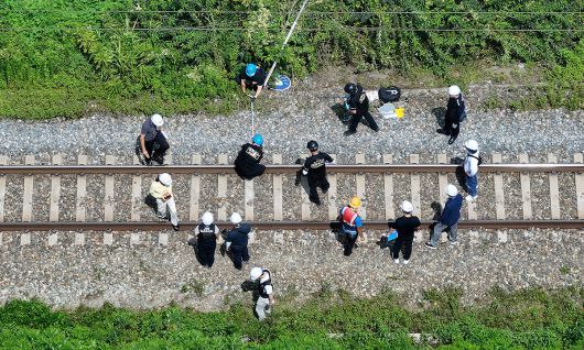 경북경찰청 경부선 열차사고 수사전담팀은 22일 오전 금속탐지기 등을 총동원, 사고 현장 주변 선로밖에 흩어졌을 수 있는 사고 근로자들의 유류품이 남아 있는지 살폈다.