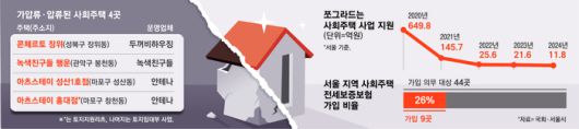 고 박원순 전 서울시장의 상징적인 주거 정책으로 꼽혔던 이 정책은 오세훈 시장으로 시장이 교체된 후 운영이 더 열악해졌다. 2020년 649억원에 달하던 사회주택 예산 지원액은 지난해 11억원으로 급감했다. 2022년 서울시의 사회주택 신규 사업 추진도 중단됐다.
