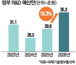 이재명 정부가 내년 사상 최대 규모 국가 연구개발(R&D) 예산을 편성키로 했다. 심화하는 글로벌 기술패권 전쟁 속에서 생존과 성장을 위한 전략적 선택이라는 평가다. 다만 다른 분야 재정지출 구조조정이 동반되지 않는다면 나라빚 증가가 불가피해 가계와 기업 사정을 오히려 악화시킬 수 있다는 우려도 나온다.