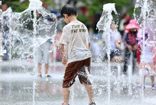 절기상 처서를 하루 앞두고 폭염이 찾아온 22일 서울 종로구 광화문광장 바닥분수에서 어린이들이 물놀이를 하며 더위를 식히고 있다. [사진 = 뉴스1] |