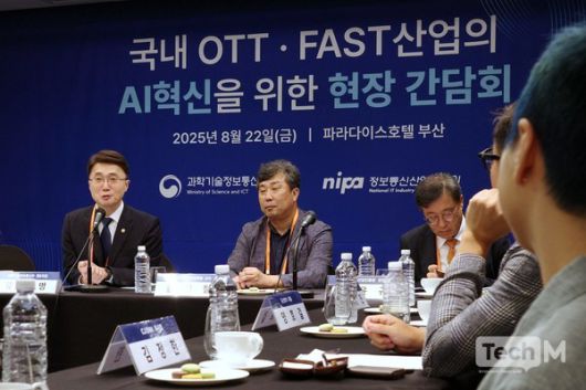 과학기술정보통신부는 22일 부산 해운대구 파라다이스호텔에서 'OTT·FAST 산업의 AI 혁신 현장 간담회'를 열고 최근 국내 미디어업계가 직면한 과제에 대한 의견을 수렴했다.