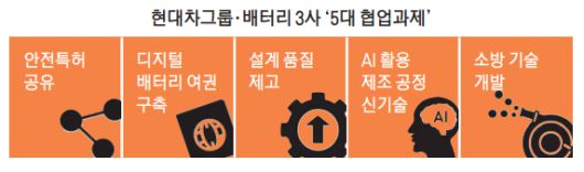 현대차그룹과 배터리 3사는 협업 일환으로 배터리 품질과 안전 강화를 위한 5대 협업 과제를 선정했다.
