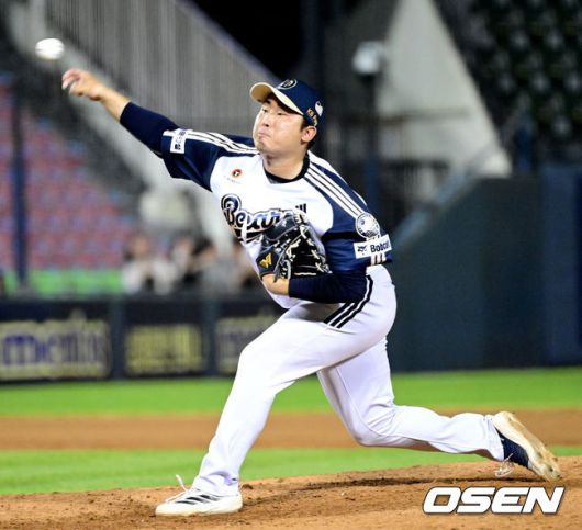 [OSEN=잠실, 최규한 기자] 22일 서울 잠실야구장에서 ‘2025 신한 SOL Bank KBO리그’ 두산 베어스와 KT 위즈의 경기가 열렸다. 홈팀 두산은 최민석, 방문팀 KT는 헤이수스를 선발로 내세웠다. 8회초 2사 3루 상황 마운드에 오른 두산 투수 김정우가 힘차게 공을 뿌리고 있다. 2025.08.22 / dreamer@osen.co.kr