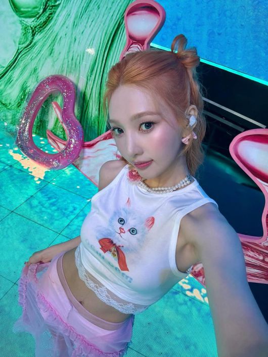 마지막 컷은 엘리베이터 안에서 찍은 셀카로, 무대 조명이 아닌 일상적인 공간에서도 인형 같은 미모로 시선을 압도했다. 리본 모양 귀걸이와 핑크톤 메이크업이 더해져 조이의 러블리 무드를 이어갔다.