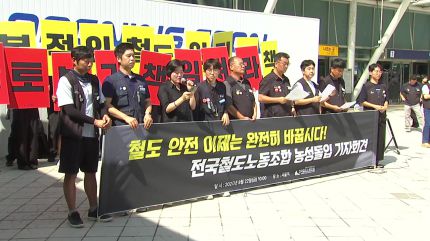 철도노조는 어제(22일) 서울역 앞에서 농성 돌입 기자회견을 열고 열차 운행 중 철도 주변에서 모든 작업을 금지해야 한다고 주장했습니다.