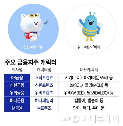 주요 금융지주 캐릭터/그래픽=이지혜 |