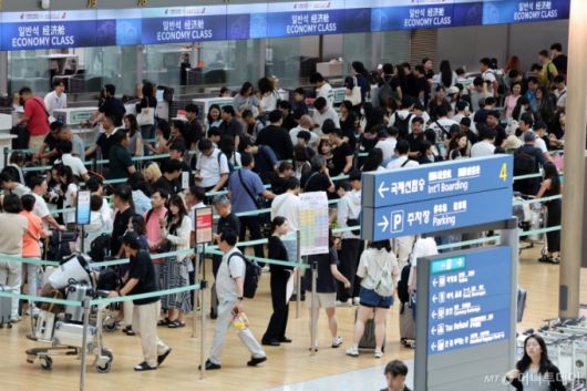 인천국제공항 출국장에 많은 여행객들이 출국 수속을 하고 있다./사진=뉴시스 제공. /사진=배훈식 |