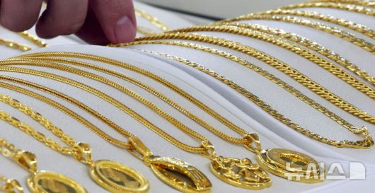 [서울=뉴시스] 추상철 기자 = 금값이 사상 최고치를 경신한 28일 오후 서울 종로구 한국금거래소에서 직원이 순금 목걸이를 정리하고 있다. 위 사진은 기사 내용과 무관함. 2025.03.28. scchoo@newsis.com |