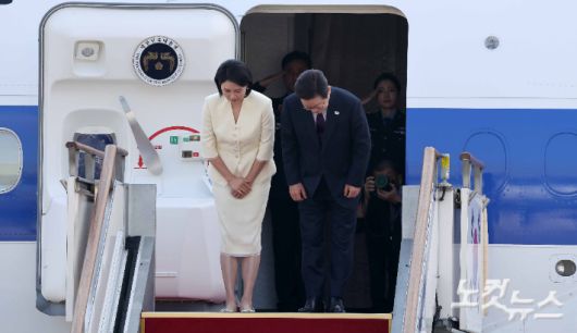 이재명 대통령과 부인 김혜경 여사가 23일 한일·한미 정상회담을 위해 경기도 성남 서울공항을 통해 출국하고 있다. 이 대통령 취임 후 2개월 만에 이뤄지는 첫 양자 방문외교이자 실용외교를 본격화하는 첫 걸음이다. 박종민 기자 |