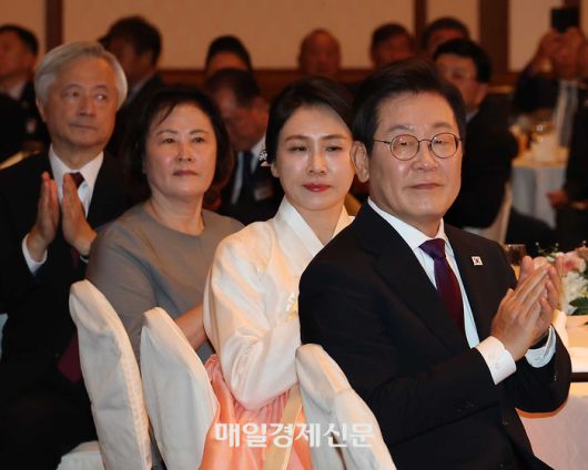 한일정상회담을 위해 일본을 방문한 이재명 대통령과 부인 김혜경 여사가 23일 도쿄의 한 호텔에서 열린 동포간담회에 참석해 박수를 치고 있다. 2025.8.23 [도쿄/김호영기자] |