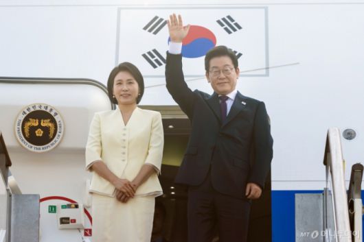[서울=뉴시스] 최동준 기자 = 이재명 대통령과 김혜경 여사가 일본·미국 방문을 위해 23일 경기 성남 서울공항에서 출발하며 인사하고 있다. (사진=대통령실 제공) 2025.08.23. photo@newsis.com *재판매 및 DB 금지 /사진=최동준 |