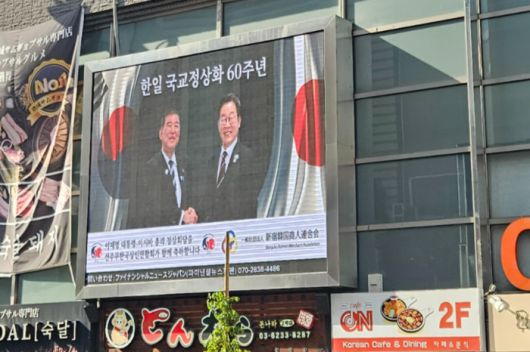 한편 재일동포들은 이재명 대통령 방일에 맞춰 도쿄 ‘코리아타운’으로 불리는 신오쿠보 거리 대형 전광판에 환영 광고를 내걸었다.