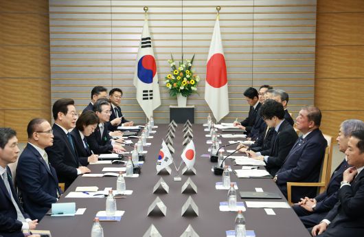 이시바 총리는 “이 대통령의 방문을 환영한다”며 “이렇게 대면으로 심도 있게 의견 교환하는 기회를 마련해 기쁘다”고 했다. 이시바 총리는 “평화와 안정은 거저 주어지는 게 아니고, 적극적으로 움직이지 않으면 주어지지 않는다”며 “(지금과 같은) 격변의 시기에는 더욱 그렇다”고 했다.