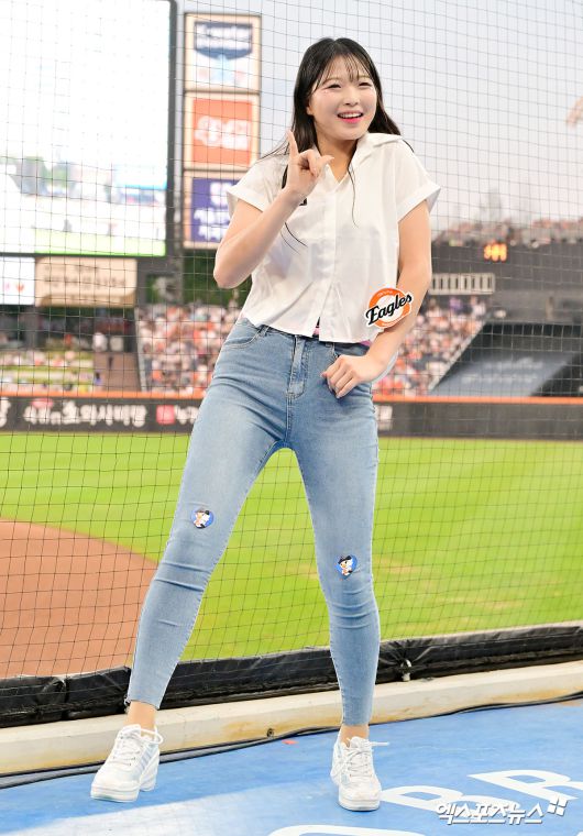 (엑스포츠뉴스 대전, 김한준 기자) 23일 오후 대전 한화생명 볼파크에서 열린 '2025 신한 SOL Bank KBO리그' SSG 랜더스와 한화 이글스의 경기, 최석화 치어리더가 멋진 공연을 선보이고 있다.김한준 기자 kowel@xportsnews.com