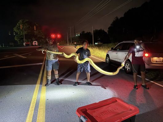 20일(현지 시간) 뉴욕포스트 등에 따르면 18일 지역 동물 애호가인 워렌 갤먼은 사우스캐롤라이나주 한 고등학교 인근에서 대형 비단뱀이 목격됐다는 소식을 듣고 지인들과 함께 추적에 나섰다.
