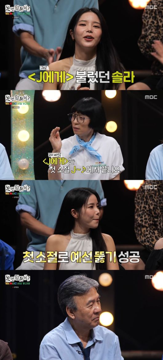 이날 방송에서 유재석이 솔라에게 "사실 진짜 'J에게'는 초반 'J'에서 끝난다. 이게 제대로 잡히지 않으면 몰입이 잘 안된다"라며 칭찬을 전했다. 박영규는 "나도 솔라 씨가 부른 노래를 들었는데, 소리가 부드러우면서도 뒤로 갈수록 단단해 오히려 원곡보다 듣기 좋았다. 내가 그래서 듀엣을 하고 싶은 사람으로 꼽았다"라고 고백했다.