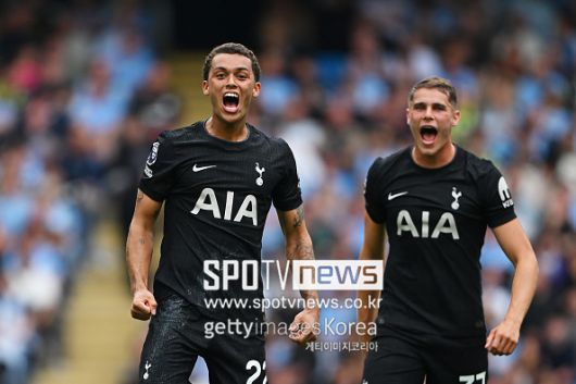 토트넘은 23일 오후 8시 30분 영국 맨체스터 에티하드 스타디움에서 열린 2025-26시즌 프리미어리그 2라운드 원정길에서 맨체스터 시티에 2-0으로 앞서고 있다.