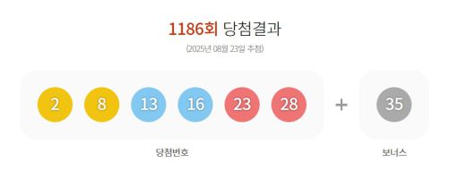 (서울=뉴스1) 남해인 기자 = 23일 발표된 제1186회 로또 1등 당첨번호는 '2·8·13·16·23·28'이다. 2등 보너스 번호는 '35'다.